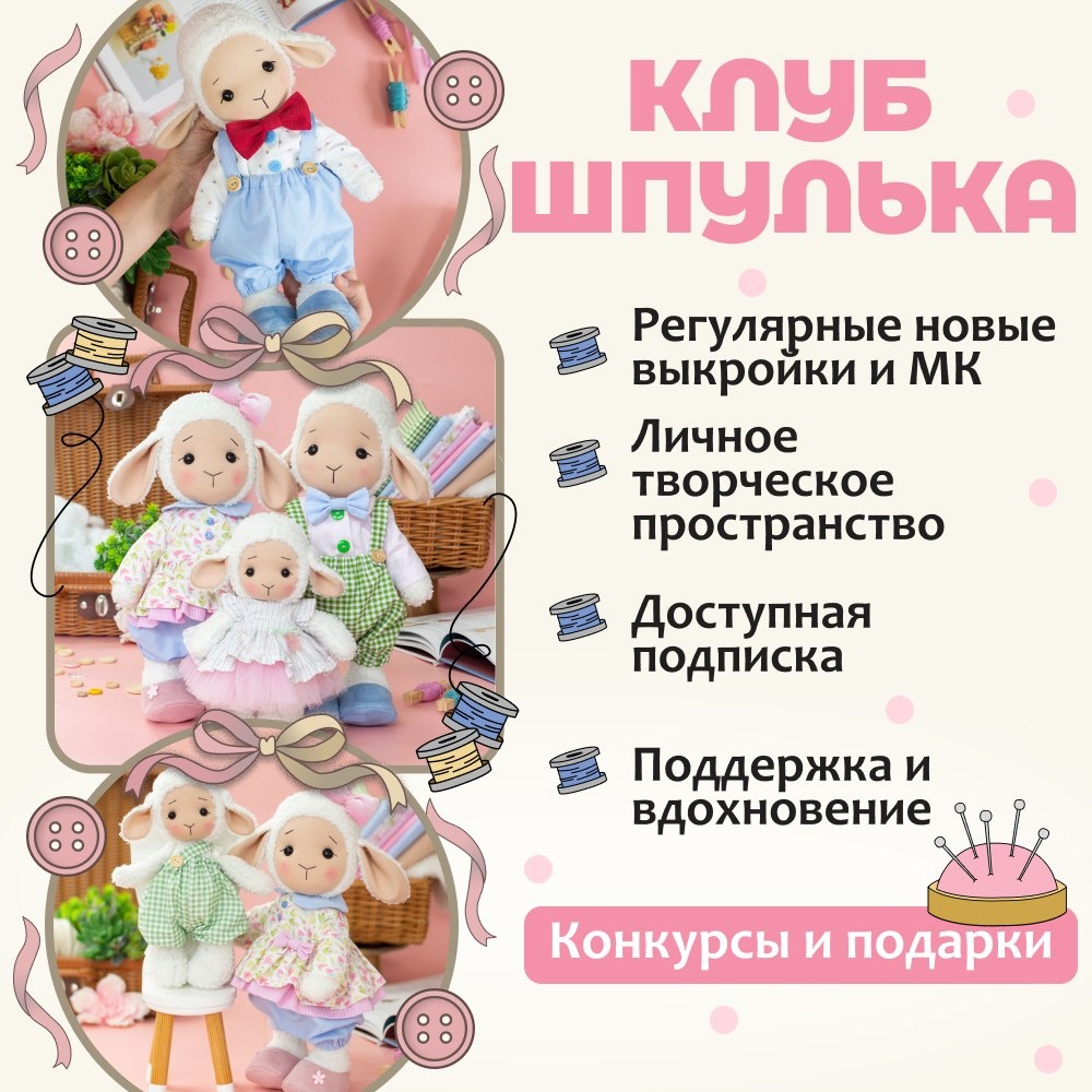 ! Если честно, я давно хотела их сшить, и весеннее настроение за окном вдохновило меня взяться за этих очаровашек. Овечки - это символ весны, Пасхи и главный герой будущего 2027 года! ЧТО БУДЕТ НА СОВМЕСТНИКЕ: 👉 Семья из четырёх персонажей: мама, папа и двое малышей 👉 сменные наряды - многослойное платье, рубашечка, комбинезон на лямках и наряды для деток 👉 и даже обувь! 👉 научитесь делать самые милые мордашки 👉 сделаем шплинтовое крепление, полностью подвижная игрушка Рост 30 см и 15 см малыши. ЧТО ВНУТРИ КЛУБА • новые совместные проекты каждый месяц • библиотека мастер-классов • мини-курсы • чат с участницами • швейная техподдержка ФОРМАТЫ УЧАСТИЯ: 1 месяц — 1 990 ₽ 6 месяцев + 1 месяц в подарок — 1 831 ₽ 12 месяцев + 2 месяца в подарок — 1 665 ₽ (самый выгодный вариант) ВХОД В ШПУЛЬКУ 👇 https://mimido.ru/club_bobbin?utm_source=tgkanal