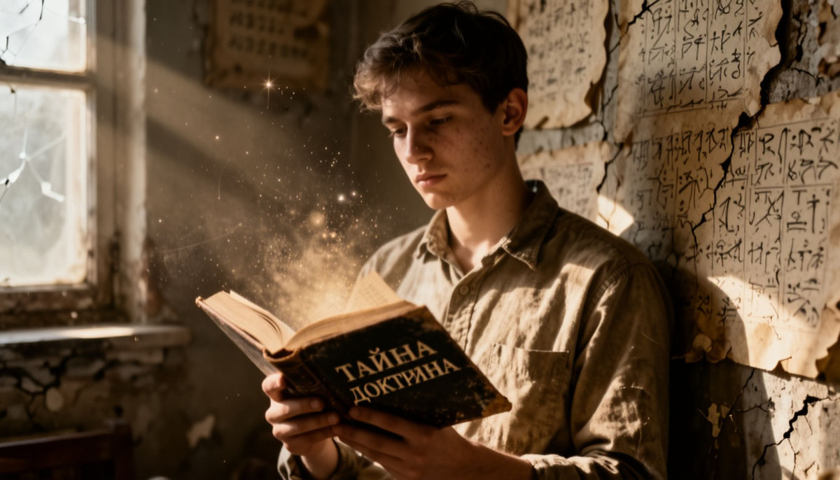 В комнате царил полумрак, какой бывает только в домах Кулу, когда солнце переваливает за сосну и золотистая пыль замирает в косых лучах, словно не решаясь упасть. Ученик — назовём его Арья, что значит «благородный идущий», — сидел за столом, испещрённым чернильными пятнами и линиями ладоней, которые он сам же когда-то вывел на дереве в минуты нетерпения. Перед ним лежала «Тайная Доктрина» — два тома в тёмном переплёте, хранившие на полях пометки, сделанные рукой Елены Петровны Блаватской. Он перечитывал стансы Дзиан в сотый раз, пытаясь уловить то, что ускользало между слов, подобно тому как вода ускользает сквозь пальцы, но оставляет влагу.