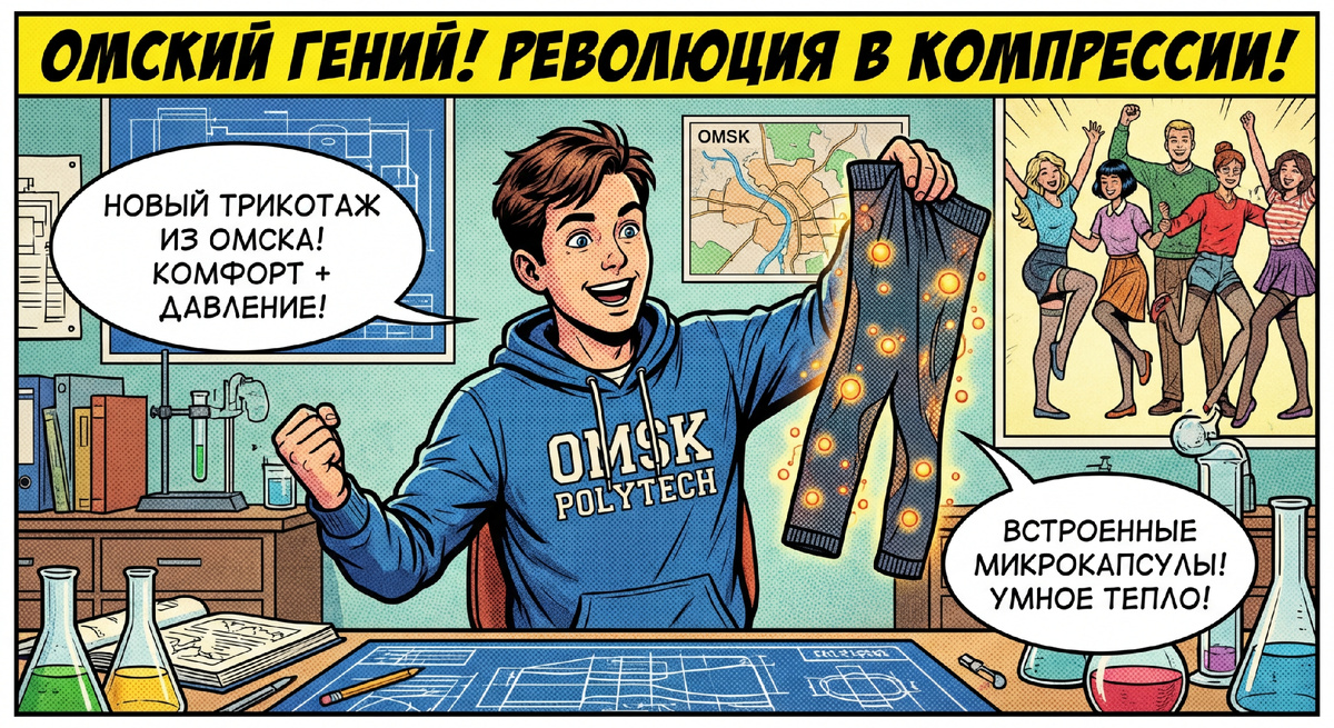 Студент ОмГТУ создал уникальный компрессионный трикотаж с микрокапсулами для повышения комфорта Обычные компрессионные чулки страдают от одного существенного недостатка: плотная ткань нарушает теплообмен, вызывая перегрев, зуд и раздражение. Из-за этого многие пациенты отказываются от их использования, что негативно влияет на лечение. Даниил Силантьев из Омска предложил инновационное решение. Его новый компрессионный трикотаж не только обеспечивает необходимое давление, но и поддерживает комфортную температуру кожи благодаря встроенным микрокапсулам. «Капсулы впитывают излишки тепла при его повышении и отдают обратно при понижении. Это помогает поддерживать оптимальный микроклимат, и пациент не испытывает дискомфорта», — объясняет Силантьев. Инвентарь может быть полезен не только людям с заболеваниями конечностей, но и тем, кто подолгу стоит на ногах, совершает длительные поездки или носит обувь на высоком каблуке. Проект уже прошел проверку на токсичность и гипоаллергенность. Студент