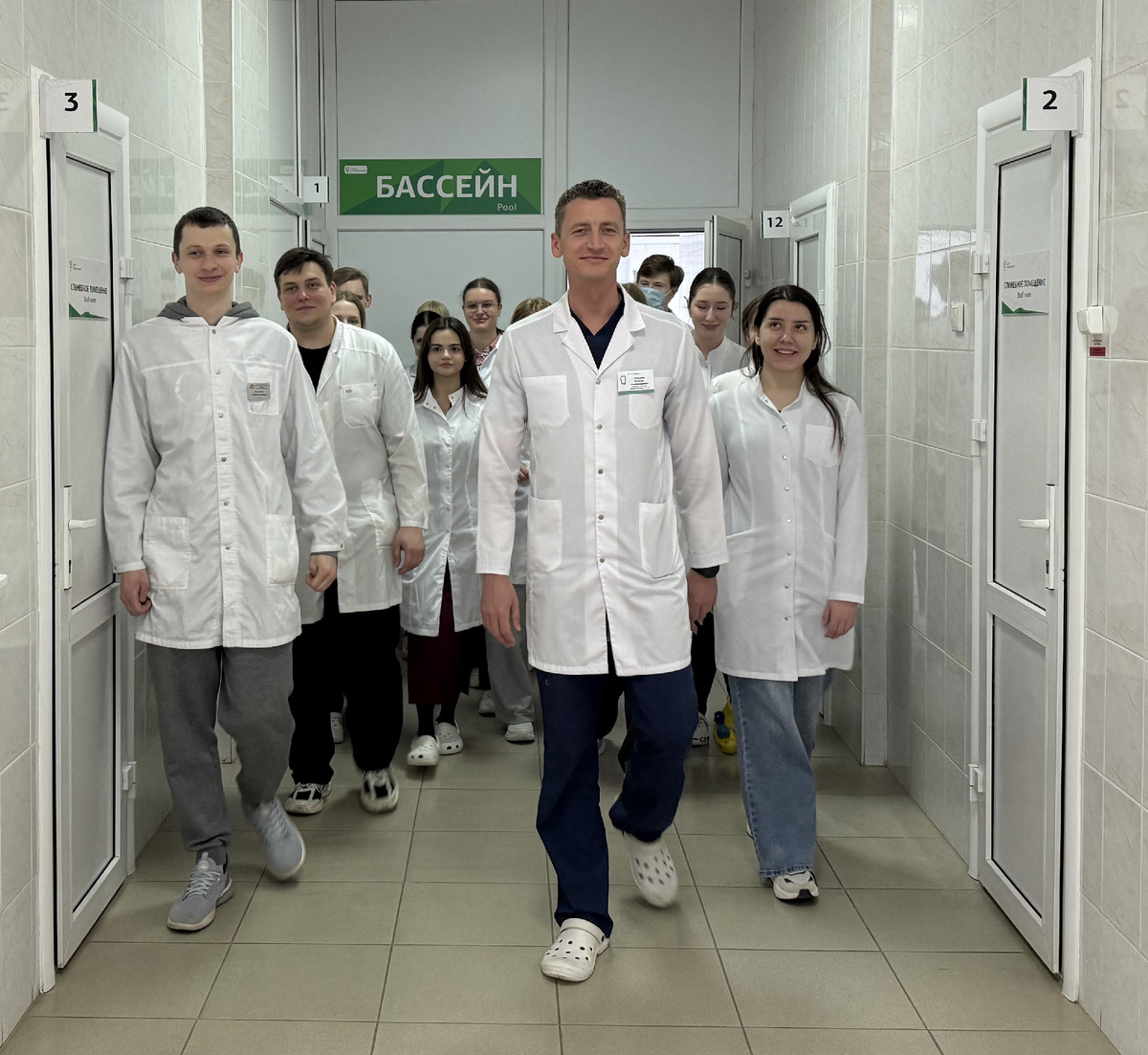 В Центре реабилитации ОКБ №1 прошел знаковый визит — студенты Института клинической медицины познакомились с современными технологиями восстановления пациентов. Встреча состоялась в рамках проекта «Школа карьерного мастерства» и стала важным этапом погружения будущих врачей в практическую медицину. Экскурсию для студентов провел заведующий отделением Евгений Александрович Редькин. Он продемонстрировал гостям мощный арсенал Центра, который позволяет возвращать к полноценной жизни пациентов после сложнейших диагнозов: инфарктов миокарда, операций на сердце (АКШ, стентирование), инсультов и эндопротезирования суставов. Юные коллеги детально изучили работу высокотехнологичного оборудования для лазеро-, магнито- и нейромышечной электростимуляции. Особое внимание привлекли методы водо- и грязелечения, а также уникальные методыгоризонтального и вертикального подводного вытяжения. «Для врача любого профиля важно понимать возможности немедикаментозного лечения. Наш Центр предоставляет широчайши