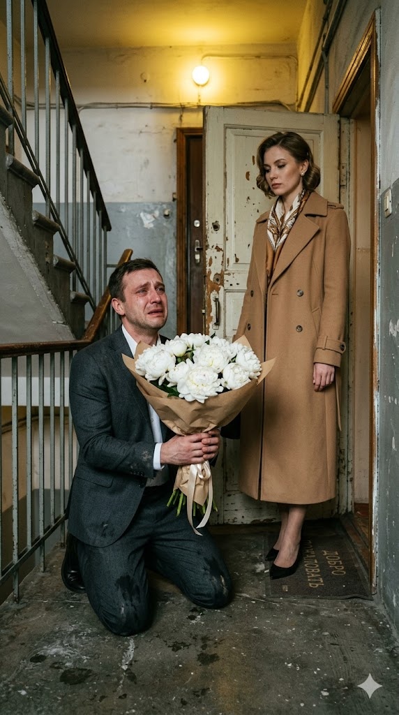 Максим остался один в тускло освещенном подъезде. Он смотрел на глухую обивку двери, сжимая в руках бесполезный букет за сто тысяч рублей. В этот момент, стоя на коленях в грязи, он окончательно понял, что потерял главное сокровище своей жизни. Но дверь в прошлую жизнь была уже наглухо закрыта.