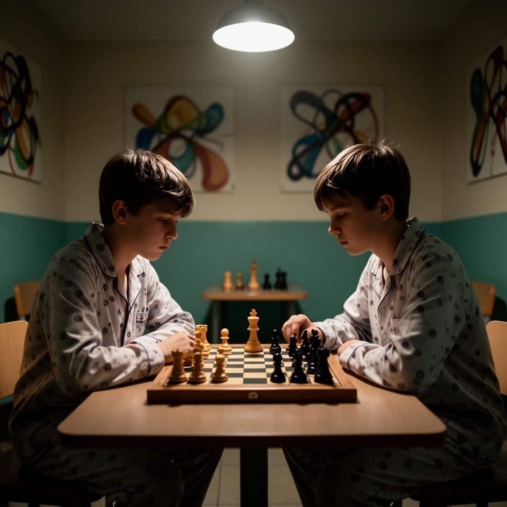 Тем временем Артём, Илья и Марк искали способ побыть вместе наедине. На арт-терапии они по-прежнему были в разных кабинетах. Но в свободное время, после ужина в игровой комнате они якобы сели играть в шахматы. Илья с Марком играли, а Артём сделал вид, что читает книгу.