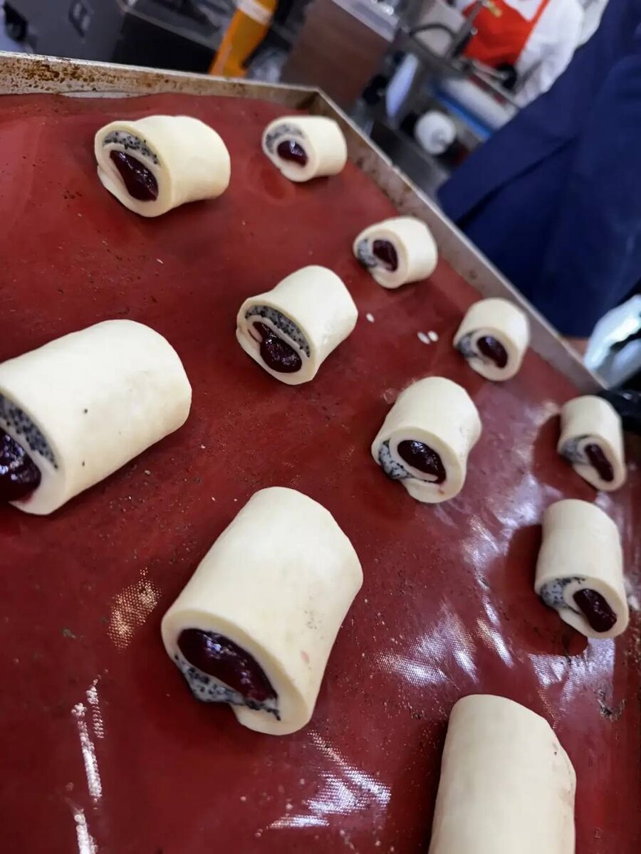 ? 🥐 Короткий ответ — не 2–3 позиции, а полноценную линейку продукции. На одной линии вы можете производить: — слойки (сладкие и сытные) — изделия с начинкой и без — рулеты и улитки — пирожки разных форматов — сосиски в тесте И всё это — с возможностью менять форму, вес, начинку и внешний вид изделия. 📈 Uni Compact — это не про одну позицию. Это про ассортимент и гибкость производства. P.s.: на видео некоторые начинки отсаживаются вручную ввиду невозможности мыть емкости с дозаторами на выставке, а показать мы хотим много разных изделий
