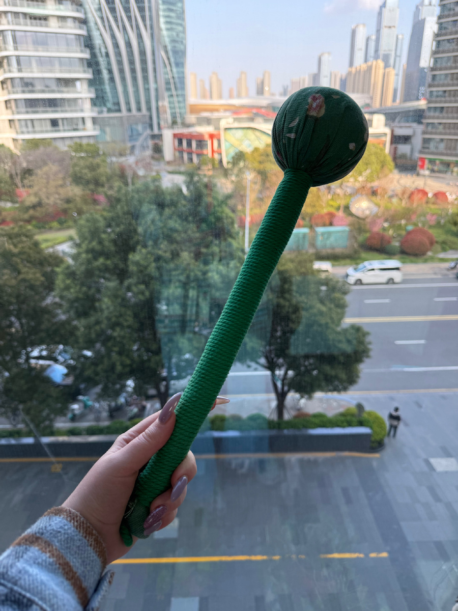 Длинная ручка, на конце — мягкая кувалдочка. У моего, например, внутри сухая полынь (艾草 — àicǎo). Выглядит забавно, правда? В России мы бы подумали: "Что это за странный предмет?". А в Китае он есть почти в каждом доме. И в каждом офисе, как я заметила. Мои коллеги, например, после долгого сидения достают свои кувалдочки и начинают методично постукивать себя по спине и плечам.