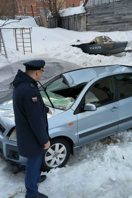 Как сообщили в прокуратуре ЯНАО, снежная масса упала на транспорт с крыши строящегося здания на улице Кольцова, 6а. Инцидент зафиксирован 25 марта. В отношении собственника объекта будут приняты меры ответственности. Фото: прокуратура ЯНАО