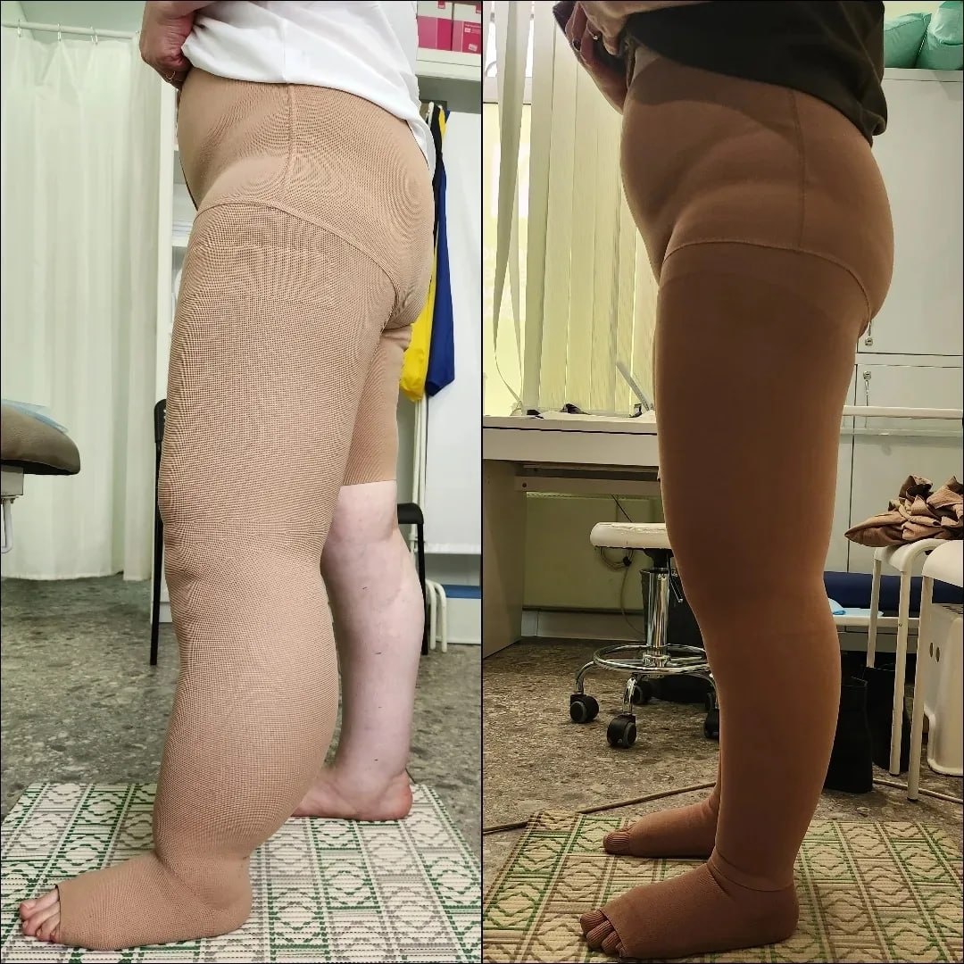 ? 🤔 Здравствуйте, дорогие друзья! 👋 На фото — сравнение двух видов компрессионного трикотажа у одной пациентки: справа — Limphacare (РФ) 🇷🇺, слева — Juzo (Германия) 🇩🇪. Разница очевидна! 👀 Означает ли это, что немецкий трикотаж неэффективен? Вовсе нет. Разберём историю пациентки кратко. 📋 2008 год: комплексное лечение рака шейки матки. С 2010-х годов: преходящие отёки ног, исчезающие после отдыха. 😴 2016 год: рожа обеих конечностей, антибактериальная терапия. Далее — повторные эпизоды рожи каждые 3 месяца. 🤒 С 2018 года отёк стал стойким в области стопы и голени. 🦶 После 2020 года: ухудшение состояния левой ноги и курс пневмомассажа с лечебной физкультурой. В 2021 году пациентка прошла хирургическое лечение — рассечение кожи с бинтованием. ✂️ Через 6 месяцев процедуру повторили. Улучшение было незначительным. 😔 2023 год: курс мануального лимфодренажа с наложением компрессионного бандажа (12 процедур) у одного из врачей-лимфологов. 💆♀️ После — надевание стандартног