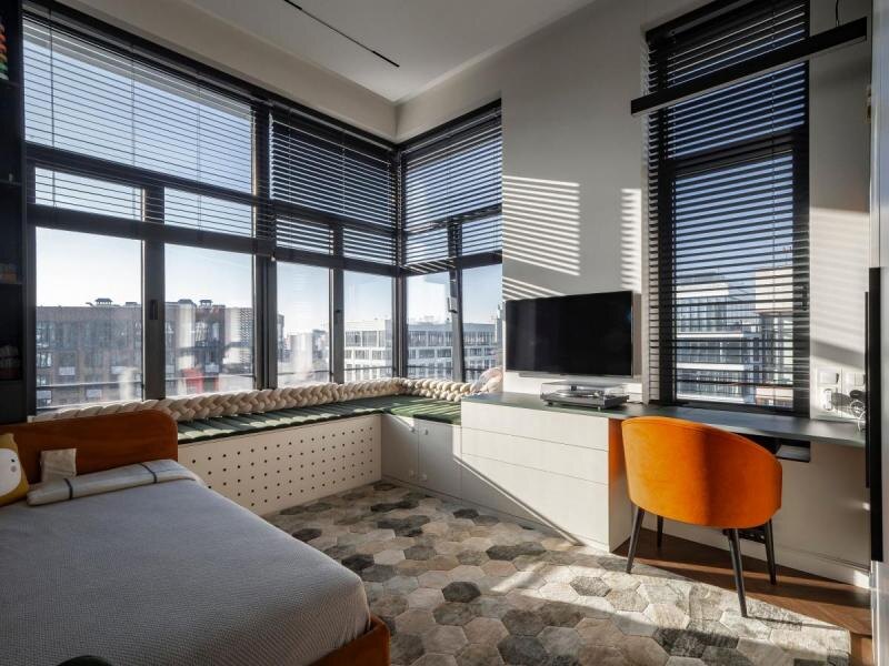 В интерьерном дизайне существуют два подхода к оформлению детской. Первый — создать «отдельный мир»: яркие цвета, тематические принты, мебель со сказочными сюжетами. Второй — интегрировать детскую в общую стилистику квартиры, сохранив единство материалов, цветовой гаммы и архитектурных решений. В свежем проекте для большой московской квартиры мы выбрали второй путь. Спальня родителей (14,2 м²) и детская (12,8 м²) — это не два разнородных пространства, а одна история, рассказанная на разных языках. Почему мы так поступили и как это влияет на ребенка — разбираемся ниже. Многие родители уверены: детская — это особенное пространство, которое должно визуально отличаться от остальной квартиры. Яркие шкафы, кровати в виде машинок, облачка на стенах — привычные атрибуты, которые ассоциируются с детством. Но у такого подхода есть обратная сторона. Когда ребенок с 3 до 12 лет живет в пространстве, которое выпадает из контекста всей квартиры, у него может формироваться подсознательное ощущение: «