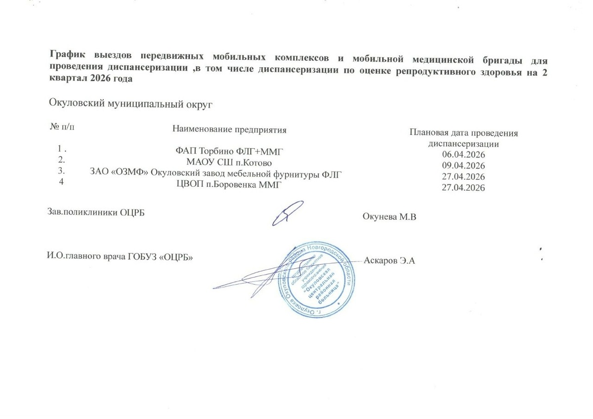 График выездных медицинских мероприятий на апрель 2026 года