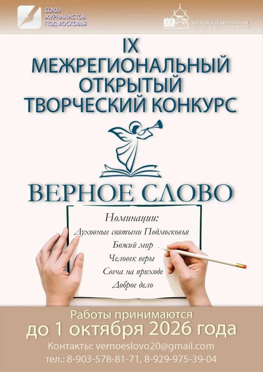 " Ознакомиться с положением можно на сайте Союза журналистов Подмосковья, там же можно скачать форму заявки. Следить за всеми новостями "Верного слова" можно в МАХ на канале проекта