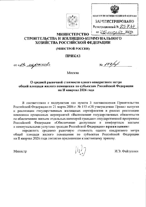 πͺΠΠΈΠ½ΡΡΡΠΎΠΉ ΠΎΠ±Π½ΠΎΠ²ΠΈΠ» Π½ΠΎΡΠΌΠ°ΡΠΈΠ²Ρ ΡΡΠΎΠΈΠΌΠΎΡΡΠΈ ΠΆΠΈΠ»ΡΡ Π½Π° II ΠΊΠ²Π°ΡΡΠ°Π» 2026 Π³ΠΎΠ΄Π°