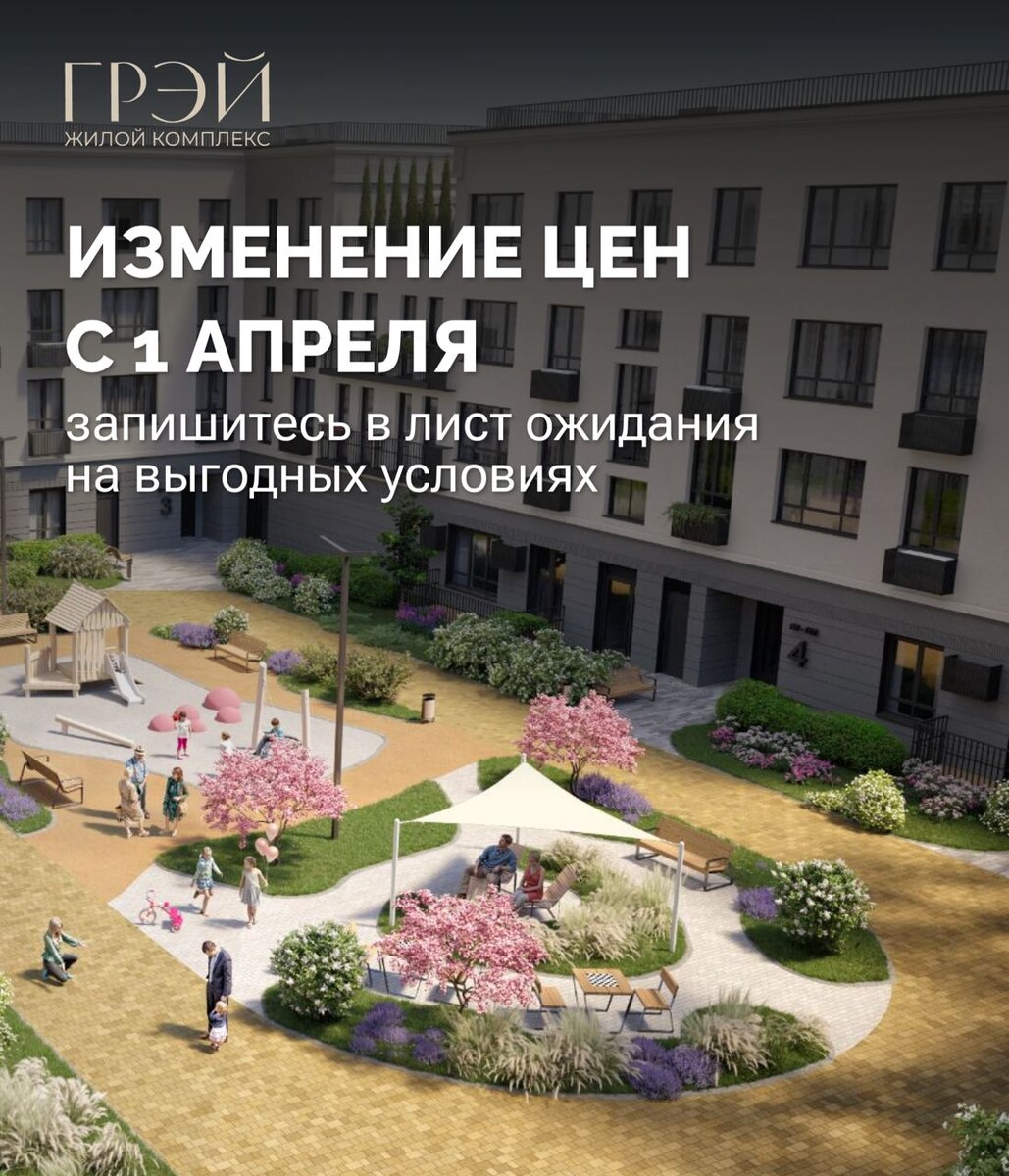 С 1 апреля в ЖК «ГРЭЙ» планируется изменение цен