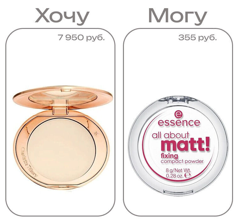 Раз в месяц я выхожу на охоту за бюджетной и качественной декоративкой. И порой нахожу на полках магазинов косметики настоящие жемчужины! Эти средства могут составить конкуренцию продуктам сегмента люкс. Делюсь своими находками! Мы любим наших читателей. А еще любим классные товары! Чтобы вы не потерялись в огромном мире бьюти-средств, мы на портале подбираем только то, что пробовали сами или купили бы себе. Хочу: Airbrush Flawless Finish Powder от Charlotte Tilbury Могу: All About Matt! от essence Девчонки с жирном типом кожи, я в ваших рядах! Уж мы-то с вами изучили матирующие средства вдоль и поперек. Оно и ясно: без этих палочек-выручалочек лицо блестит, как масляный блинчик, уже через пару часов после умывания. Поэтому декоративку ищем с матирующим и выравнивающим эффектом. Пудра Airbrush Flawless Finish Powder от Charlotte Tilbury как раз снискала славу «блюра без фотошопа». Мельчайшие частицы в ее составе разглаживают кожу, делают поры незаметными, выравнивают микрорельеф и аб