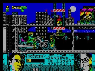 Динамичный run 'n' gun для ZX Spectrum, созданный российским разработчиком Олегом Ориджином в 1997 году. Это одна из заметных отечественных работ на платформе, выполненная полностью на русском языке. Действие разворачивается в антиутопическом Нью-Йорке будущего, где мафия срослась с властью. Игрок выступает в роли полицейского Мэттью Крэнстона по прозвищу Metal Man. Под руководством напарников ему предстоит пройти пять миссий: от проникновения в заброшенное здание до финальной схватки с крёстным отцом мафии. Каждый уровень предлагает уникальную задачу — сбор частей чипа, поиск оружейного склада, обезвреживание бомб, уничтожение терминалов. Помимо стандартного перемещения, присутствуют эпизоды на летающем мотоцикле, управление погрузчиком и краном. Управление — классическая раскладка QAOP с выстрелом на Caps Shift, также поддерживаются джойстики. В игре есть секреты, умножающие очки, и полезные предметы: бронебойные пули, аптечки, защитные экраны. В 2014 и 2017 годах вышли переиздан