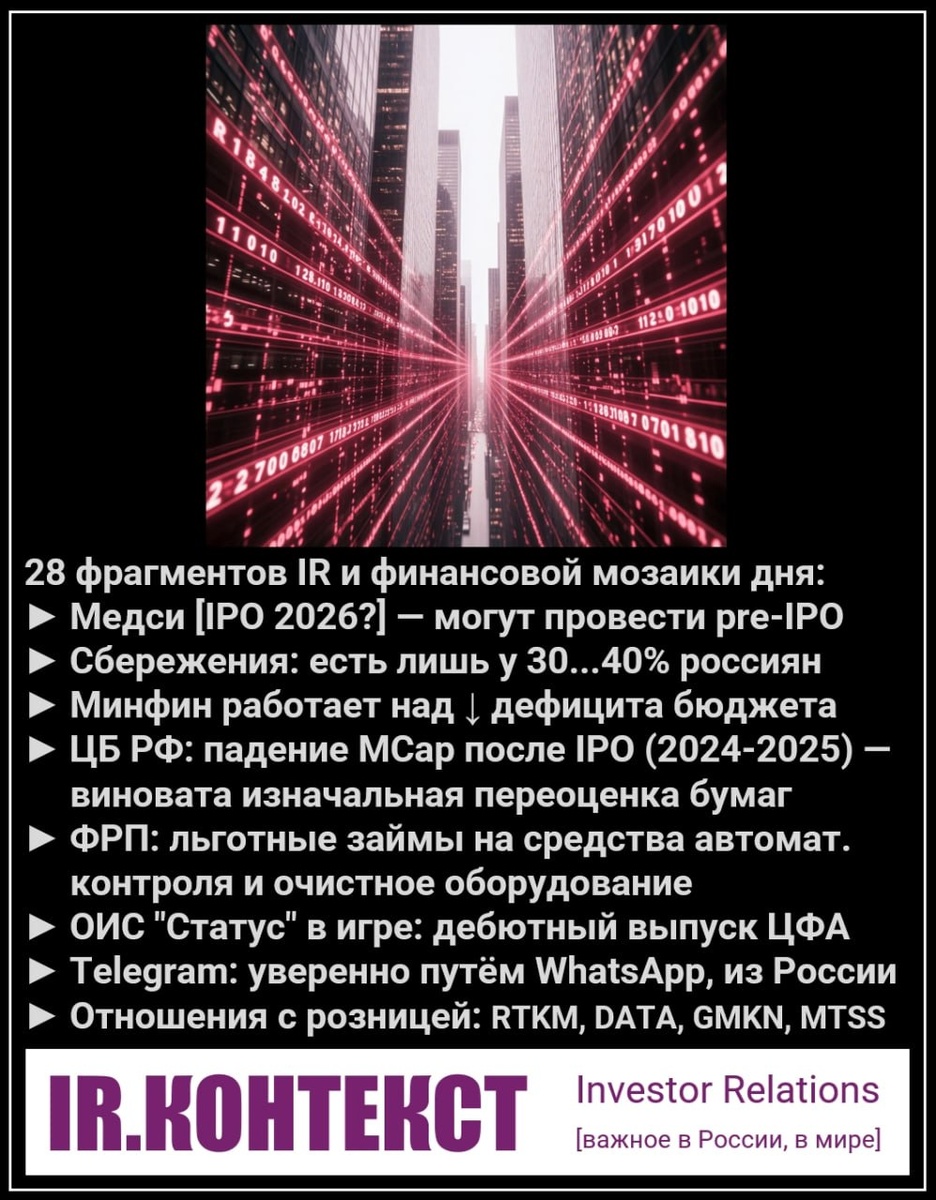 ► Медси (АФК «Система») [IPO 2026?] — сеть клиник может привлечь инвесторов в формате pre-IPO.