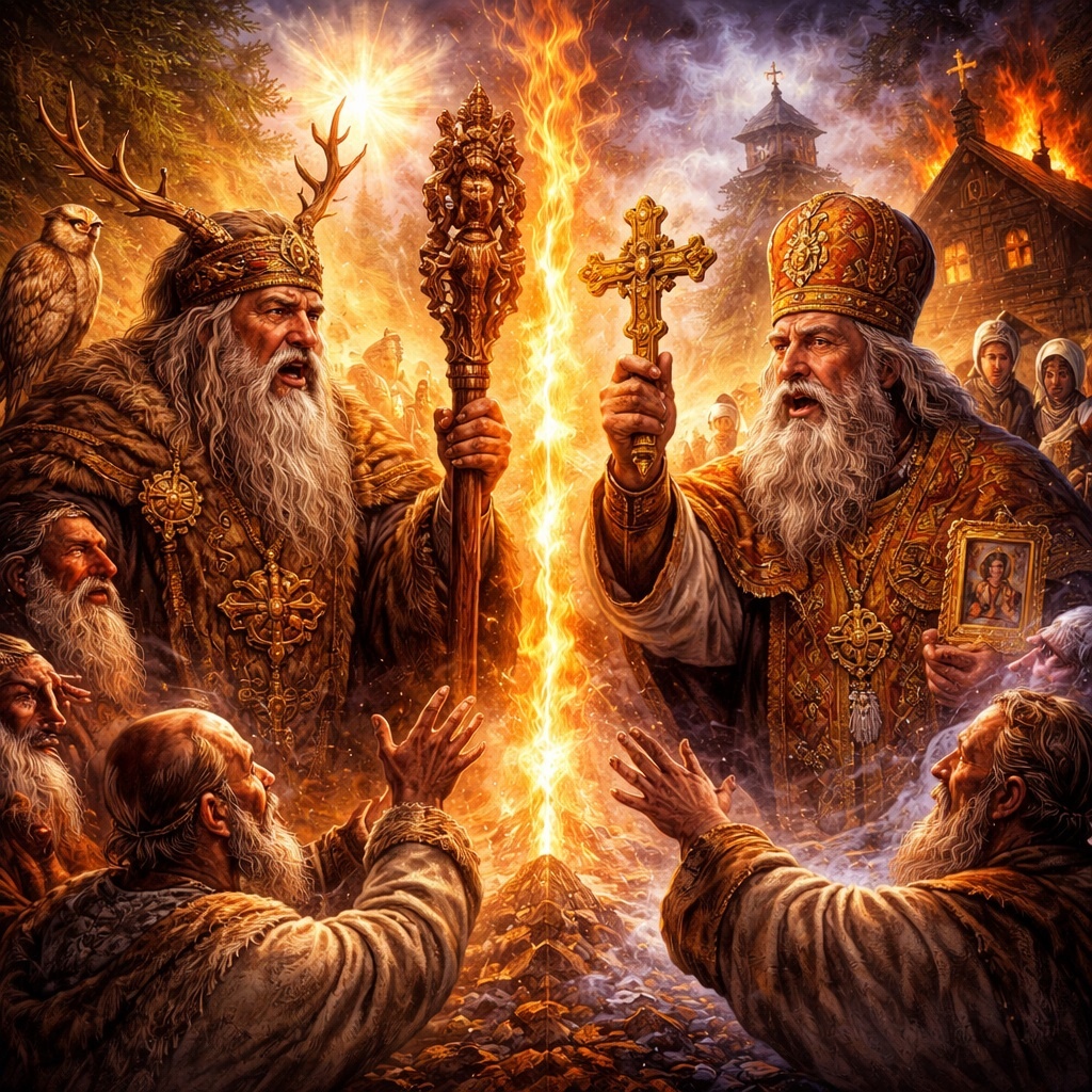 Сказать, что жрецы были ближе к людям, — значит признать, что христианизация была не просто “просвещением”, но и отрывом народа от части его естественного духовного мира. Для кого-то это звучит как крамола. Но это факт культурного масштаба. Сказать, что священники принесли другую форму глубины, — значит признать, что церковь не была только насилием, а несла свою правду, свою систему смысла, свою нравственную вертикаль. Для кого-то и это уже невыносимо.