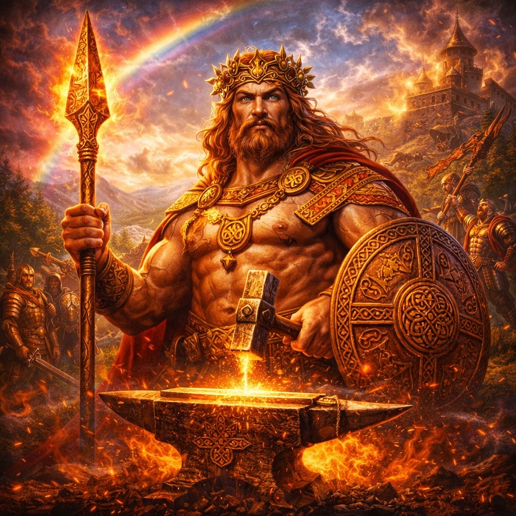 Кто такой Луг? Не просто “бог света”. Не просто “воин с копьём”. Не просто “покровитель ремёсел”. Не просто “герой древних преданий”. Луг — это фигура победной полноты. Образ силы, которая умеет и бить, и создавать, и вести, и превосходить. Его копьё — знак решающего удара. Его многоремесленность — знак высшего мастерства. Его геройский ореол — знак того, что в древнем мире по-настоящему чтили не узкую функцию, а собранное превосходство.