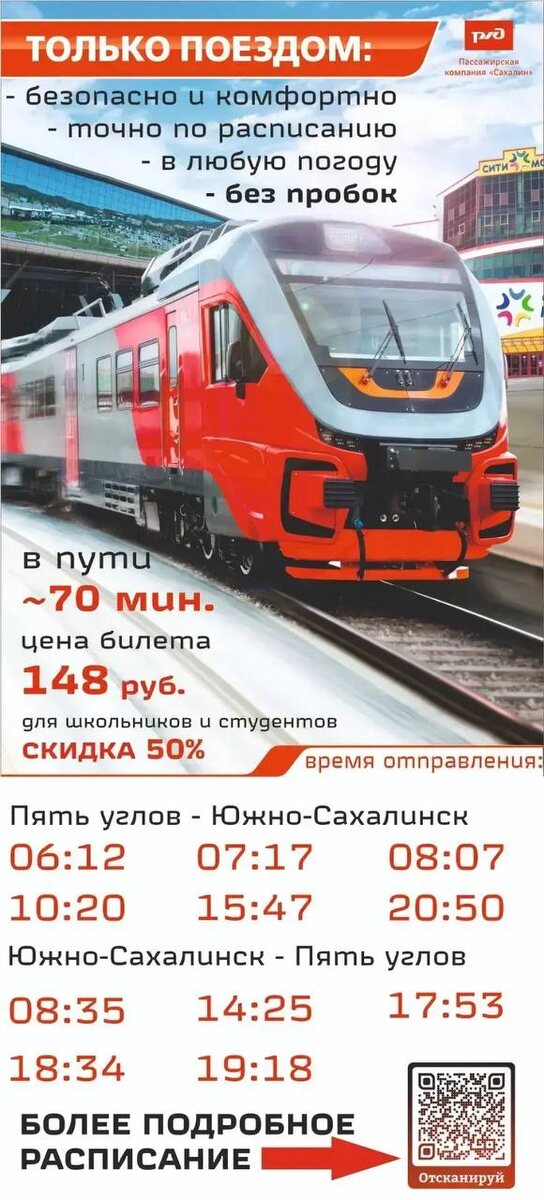 ! 📌С 29 марта в расписании движения поездов пригородного сообщения произойдут изменения 📍Для жителей Корсаковского муниципального округа добавлена остановка «Пристань». 🟢Первый утренний пригородный поезд по маршруту Пять углов – Алые розы будет отправляться на 25 минут раньше - в 6 часов 12 минут. 📎Продлены маршруты двух поездов с новыми начальными станциями Христофоровка – Долинск и двух поездов с новыми начальными станциями Новоалександровка – Пять углов. ✔Подробно ознакомиться с новым расписанием можно на сайте pk-sakhalin.ru, в мобильном приложении «РЖД Пассажирам». @mintransco 🧒Подписывайтесь на Мой Корсаков в MAX и будьте в курсе событий!