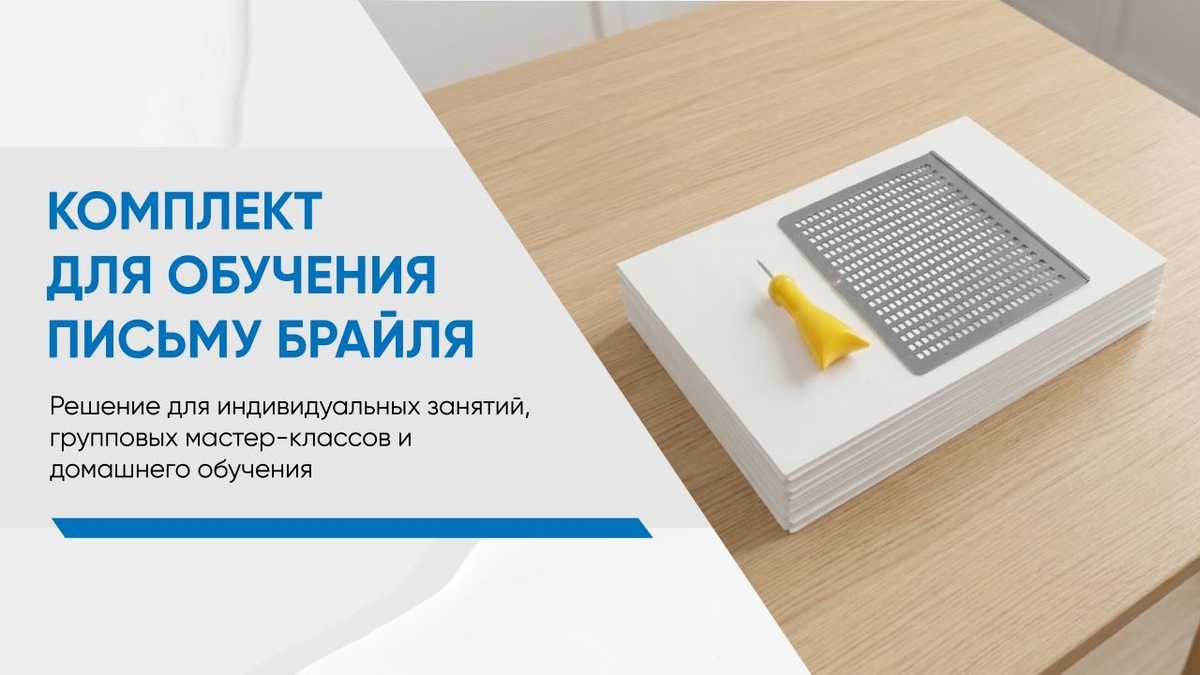 Ассортимент Тифлоцентра «Вертикаль» пополнился комплектом «Мастер-класс по письму Брайля». Он предназначен для тифлопедагогов, логопедов и родителей детей с нарушениями зрения. Набор помогает осваивать основы тактильного письма в доступной форме – от первого штриха до уверенного чтения. В состав комплекта входят классический грифель для создания рельефных точек, удобный прибор для письма шрифтом Брайля, а также специальная брайлевская бумага (290 листов), обеспечивающая четкий отпечаток знаков. Материалы набора – алюминий, сталь, пластик и бумага – долговечны и безопасны для использования. Комплект прост в использовании и не требует специальной подготовки. Алгоритм работы следующий: Комплект подходит для индивидуальных занятий, групповых мастер-классов и домашнего обучения. Работа с ним способствует развитию тактильных навыков, мелкой моторики и уверенности в общении. Переходите в карточку товара и добавляйте в корзину комплект для мастер-классов. Сделайте урки по шрифту Брайля удобным