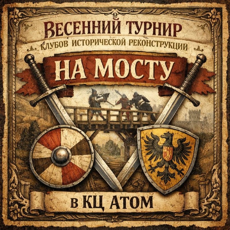В КЦ АТОМ!⚔️ ⚔️ ДОСПЕХИ , ЩИТЫ И МЕЧИ К БОЮ! 🗡5 апреля клуб «Атом» превращается в средневековое поле боя. Культурно-историческое объединение «Дружина железного рога» проводит весенний турнир по историческому фехтованию «На мосту» — и это не театральная постановка. Команды из Москвы и Московской области в аутентичных доспехах, с мечами, топорами и копьями сойдутся на дощатом настиле в номинациях «Широкий мост» и «Узкий мост» — тактика и техника боя раннего Средневековья в максимально приближенных к историческим реалиям условиях. Пять часов живого турнира, где можно не только смотреть, но и узнать о военном деле, быте и традициях эпохи из первых уст — от людей, которые посвятили этому годы. 📍Клуб «Атом», ул. Маршала Тухачевского, д. 20, стр. 2 📅5 апреля, 12:00–17:00 🎟 Бесплатно, 18+ 🔗 БИЛЕТ НА ИСТОРИЧЕСКУЮ РЕКОНСТРУКЦИЮ 📞 +7 (499) 192-79-46 #историческоефехтование #реконструкция #турнир #НаМосту #клубАтом #ХорошевоМневники #ОКЦСЗАО #Москва #БесплатноМосква #афишаМосква
