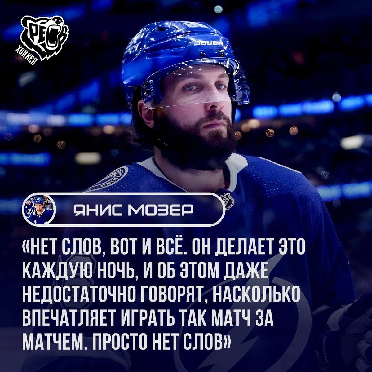 » Защитник «Тампа‑Бэй Лайтнинг» Янис Мозер восхитился игрой российского нападающего Никиты Кучерова — лидера гонки бомбардиров текущего сезона. В комментарии для официального сайта «Тампы» Мозер сказал: «Нет слов, вот и всё. Он делает это каждую ночь, и об этом даже недостаточно говорят, насколько впечатляет играть так матч за матчем. Просто нет слов». Статистика Кучерова в нынешнем сезоне регулярного чемпионата впечатляет, в 66 матчах он забил 40 голов, отдал 81 результативную передачу, а его коэффициент полезности составил «+45». Невероятная стабильность и результативность! 🔥 🐻 Слышишь? ЭТО РЁВ ХОККЕЯ