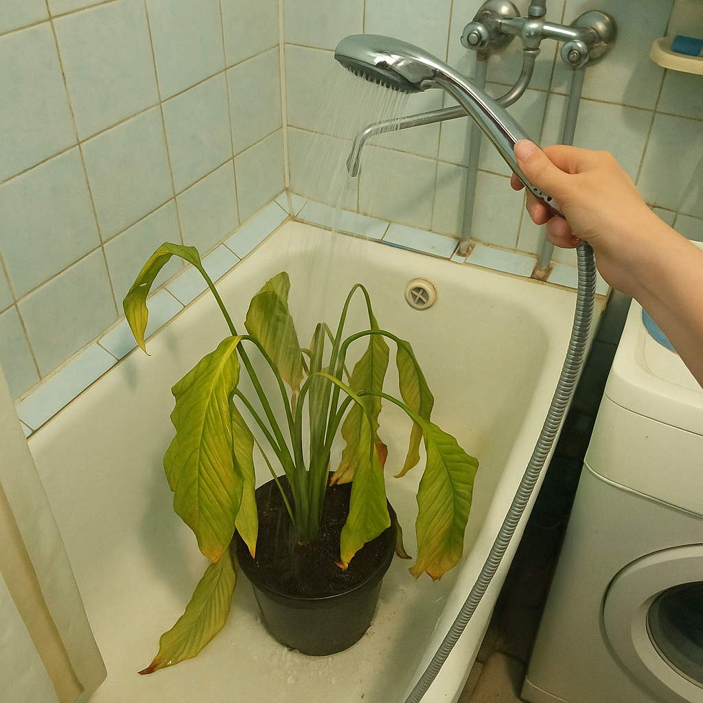 Горячий душ - это не про "помыть листики", как думают многие. Это про термошок, который запускает сложнейший биохимический каскад. Не верите? Все начинается с температурного расширения. Теплая вода (расскажу о цифрах чуть позже) проникает в грунт и "взрывает" застоявшиеся солевые отложения на корнях. Растворимость солей резко возрастает с температурой. Мы просто смываем этот химический барьер, который блокировал всасывание. Но самое интересное происходит на клеточном уровне. В ответ на резкий перепад температур растение начинает синтезировать белки теплового шока (БТШ). Нет, это не болезнь. Это древнейший механизм защиты, который "сшивает" поврежденные клеточные структуры и активирует спящие почки. Представьте, что вы дали организму мощный пинок, заставив его мобилизовать все резервы. Это не магия, это биологический тормоз, снятый с ручника. Вот что мы получаем на выходе: Мой подопытный - Scindapsus pictus, который пережил две пересылки, один залив и, кажется, встречу с котом. Он в
