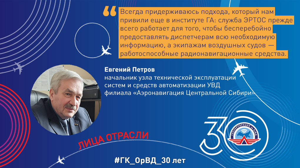 В 1987 году получил высшее образование в знаменитом Рижском Краснознаменном институте инженеров гражданской авиации (РКИИГА). После окончания вуза по распределению вернулся в родной город и пришел работать на предприятие. Сначала в должности инженера-электроника базы эксплуатации радиотехнического оборудования и связи Красноярского объединенного авиаотряда, а через два года – инженером Красноярского филиала РГП «Красноярскаэронавигация». В разговоре Евгений Вениаминович больше рассказывает не о себе, а в первую очередь о том, что удалось сделать. «Всегда придерживаюсь подхода, который нам привили еще в институте ГА: служба ЭРТОС прежде всего работает для того, чтобы бесперебойно предоставлять диспетчерам всю необходимую информацию, а экипажам воздушных судов — работоспособные радионавигационные средства, так как все мы в гражданской авиации работаем на одну цель – доставить пассажира из точки А в точку Б, вовремя и безопасно». В 90-х годах наш герой принимал непосредственное участие в