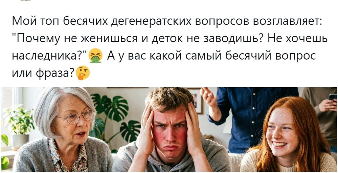 «Как дела? Что новенького? А чё ты не женился-то ещё?»: пользователи набросали список невинных, но очень бесячих вопросов