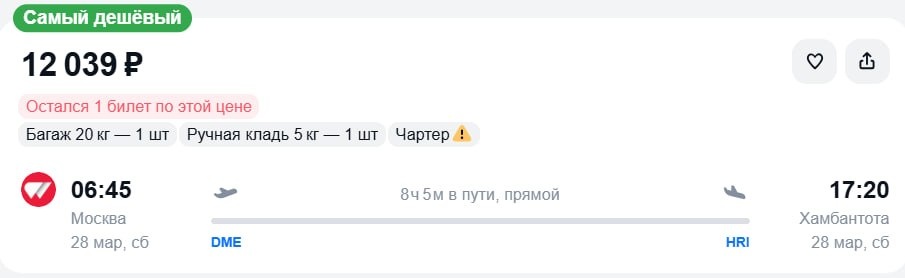 🇱🇰Прямые рейсы на Шри-Ланку (Хамбантота) за 12000 рублей