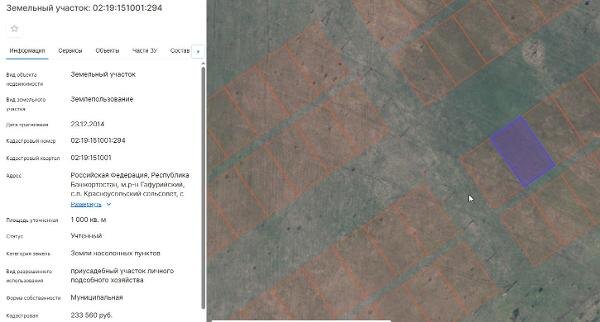 Название: земельный участок из категории земель населенных пунктов, кадастровый номер 02:19:151001:294, площадью 1000+/-11 кв.м., вид