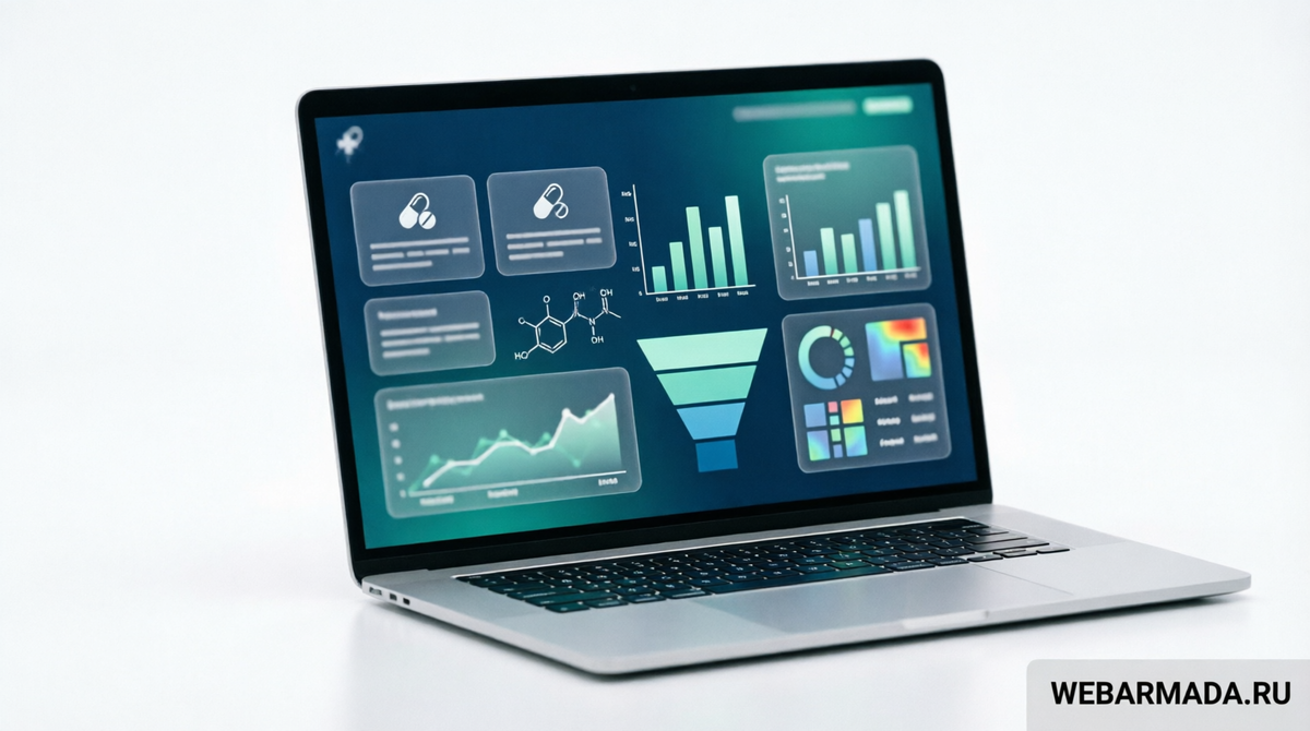 Web Armada специализируется на фармацевтических проектах. Свяжитесь с нами для бесплатного аудита — покажем точки роста и спрогнозируем, сколько новых заказов вы можете получить.