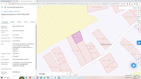 Название: Земельный участок с кадастровым номером 44:07:131001:264, общей площадью 1000 кв.м, расположенного по адресу: Костромская область