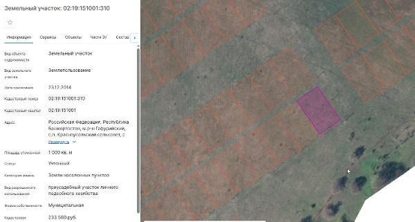 Название: земельный участок из категории земель населенных пунктов, кадастровый номер 02:19:151001:310, площадью 1000+/-11 кв.м., вид