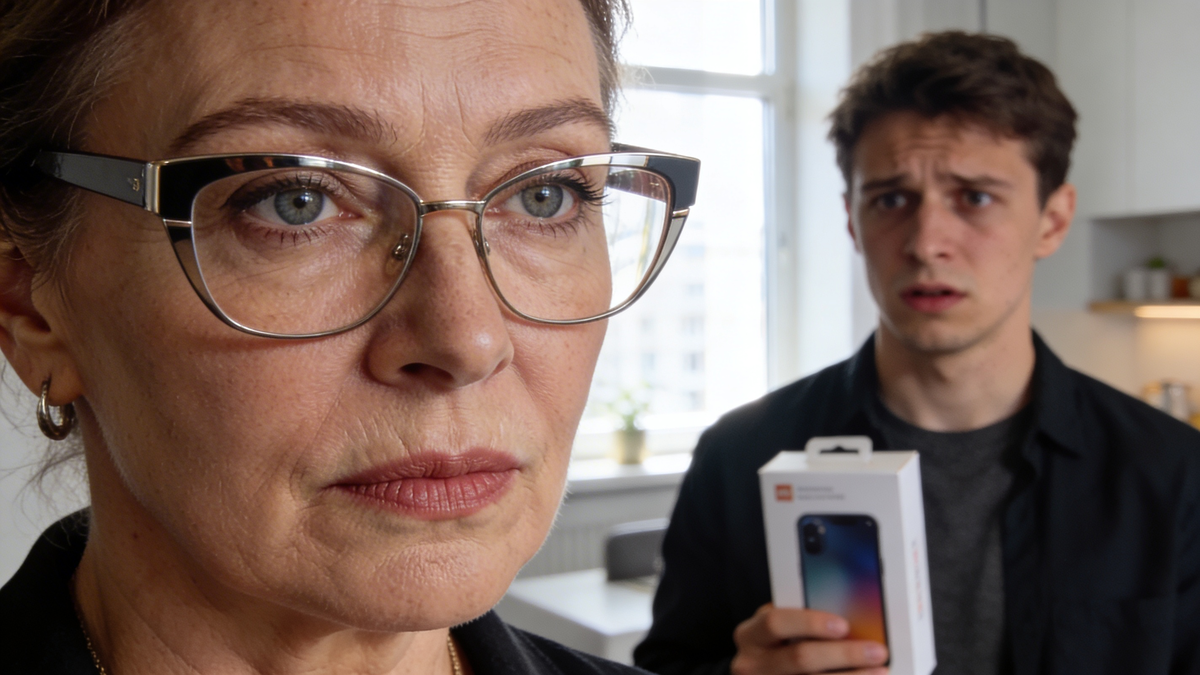 Денис резко обернулся. Улыбка мгновенно сползла с его лица, уступив место растерянности, а затем и панике. Он рефлекторно попытался спрятать коробку с телефоном за спину, но было уже поздно.