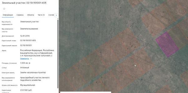 Название: земельный участок из категории земель населенных пунктов, кадастровый номер 02:19:151001:405, площадью 1000+/-11 кв.м., вид