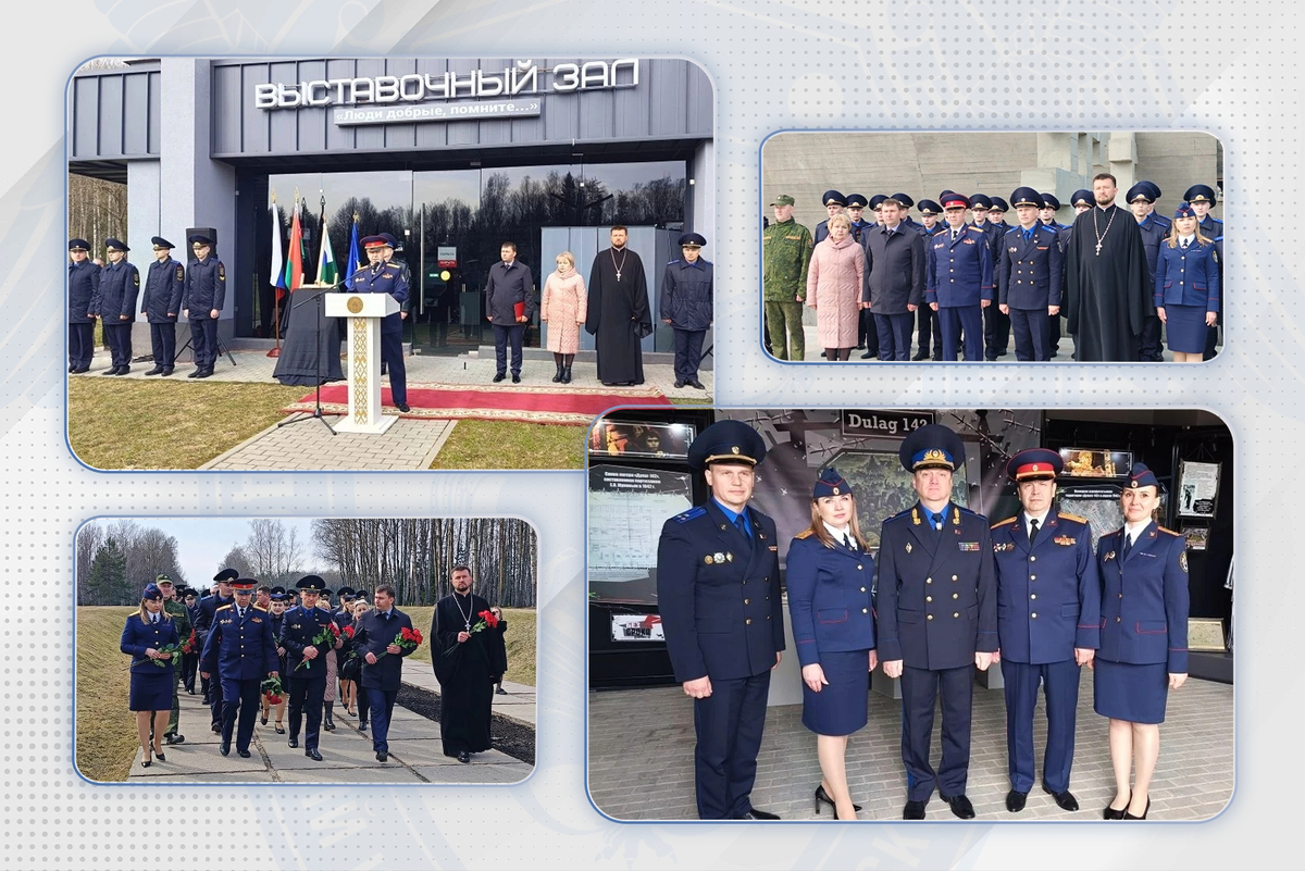 По поручению Председателя Следственного комитета Российской Федерации в ней приняли участие делегации управления общественно-политической работы и следственного управления СК России по Брянской области. Экспозиция, развернутая на священной земле – символе трагедии белорусского народа, – доставлена в Республику Беларусь из Брянской области. Ее основу составляют уникальные экспонаты Брянского государственного краеведческого музея «Дулаг-142» о работе следователей в годы Великой Отечественной войны, раскрытии преступлений нацистов и их пособников, а также современной борьбе с попытками фальсификации истории. В торжественном мероприятии приняли участие первый заместитель Председателя Следственного комитета Республики Беларусь Олег Станиславович Шандарович, руководитель отдела пропагандистской и агитационной работы управления общественно-политической работы Следственного комитета России Игорь Владимирович Федотов, директор Государственного мемориального комплекса «Хатынь» Дмитрий Сергеевич Вильтовский, директор Брянского государственного краеведческого музея Ирина Константиновна Кулешова, настоятель храма в честь Рождества Пресвятой Богородицы в мемориальном комплексе «Хатынь» протоиерей Павел Яцукович, сотрудники следственных ведомств двух стран, курсанты следственно-экспертного факультета Академии МВД Республики Беларусь.