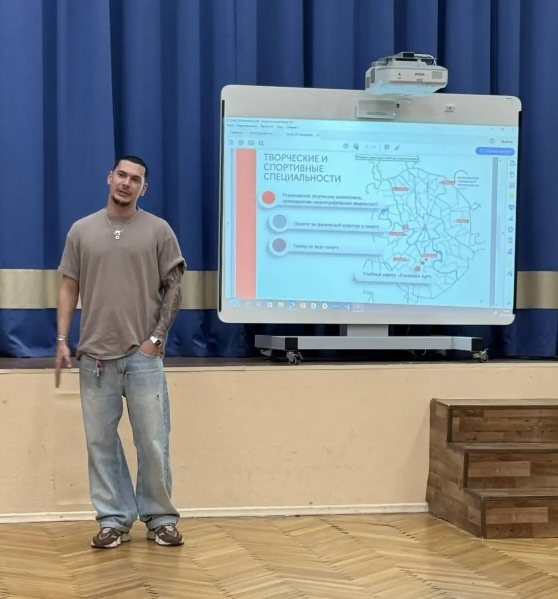 В жизни каждого человека есть сцена. А у кого-то она становится судьбой… В рамках профориентационной работы и в преддверии Дня театра мы пригласили в школу тех, для кого сцена — это настоящий дом. И провели яркий танцевальный мастер-класс! 💃 В роли наставников выступили: 🌟 Василенко Николай Анатольевич — преподаватель департамента культуры и спорта ИСПО им. К.Д. Ушинского МГПУ, педагог современных танцевальных направлений, композиции и постановки, артист балета высшей категории, хореограф и артист балета певицы Asti. 🌟 Студенты колледжа «Варшавка Арт» ИСПО им. К.Д. Ушинского МГПУ. 🔥 Ребята не только попробовали себя в современной хореографии, но и увидели, как из увлечения рождается профессия. Как сцена становится работой, призванием и образом жизни. Спасибо за этот день, энергию и вдохновение! Вы наглядно показали: ✨ профессия может быть искусством, ✨ а искусство — профессией. #школа1538 #Профориентация #ДеньТеатра #Танец #Искусство