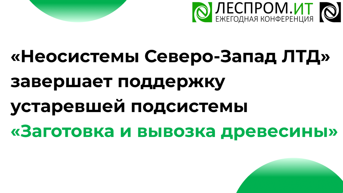 «Неосистемы Северо-Запад ЛТД» завершает поддержку устаревшей подсистемы «Заготовка и вывозка древесины»
