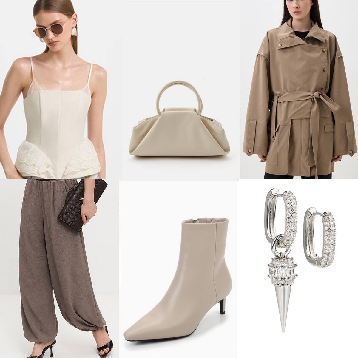 Образ собрала на #lamoda Корсет 7500 рублей Брюки 1900 рублей Сумка 9700 рублей Ботильоны 3800 рублей Куртка 11700 рублей Серьги 2400 рублей ✅Мой канал про бюджетный wb здесь ✅Мой канал в МАХ здесь #корсеты #топы #брюки #сумки #обувь #верхняяодежда #аксессуары #нескучныйкэжуал #вечерний