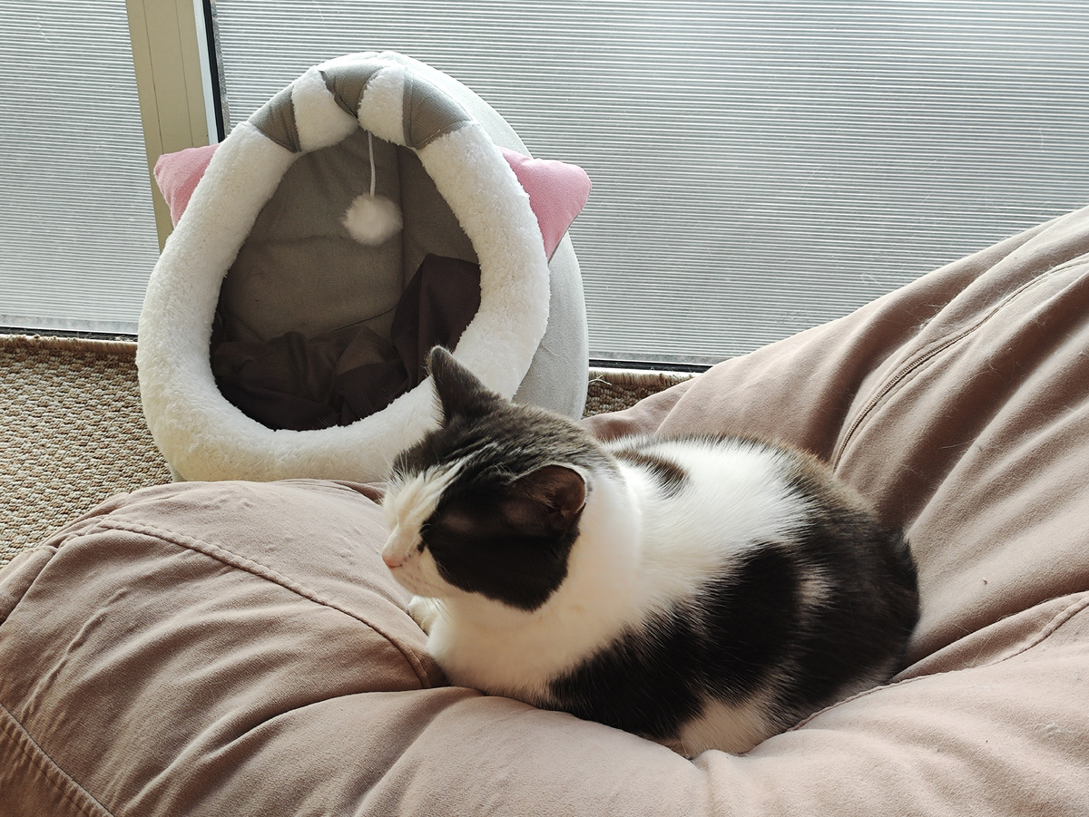 Насколько у меня Тосенька не любил никаких лежанок, настолько эта девчонка их обожает. За день успевает поваляться на всех)