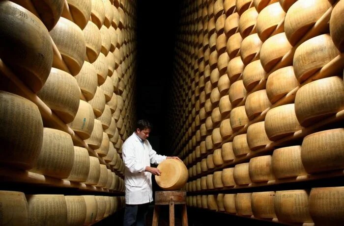 Привет, пикабушники! Вы когда-нибудь брали в магазине «пармезан» за 400 рублей кило и думали: «Ну, норм»? А потом пробовали настоящий в Италии — и понимали, что это два разных продукта? Я вот недавно залез в тему и охренел. Настоящий Пармиджано Реджано — это не просто сыр. Это целая религия с жёсткими правилами, которые охраняет весь Евросоюз. Один круг весит примерно 40 кг и требует 550 литров молока! Да, полтонны на одну голову. И всё это молоко — только из пяти провинций Италии: Парма, Реджо-Эмилия, Модена, Болонья (часть) и Мантуя (часть). Никаких «аналогов» из других стран быть не может по закону. Это называется PDO — защищённое обозначение происхождения. В конце каждую голову проверяют мастера: стучат по ней молоточком, слушают звук. Потом прожигают клеймо с надписью PARMIGIANO REGGIANO, номером сыроварни и датой. Если не прошёл тест — клейма нет, сыр идёт на переработку. С 1996 года это PDO-защита ЕС. Название «Пармиджано Реджано» имеют право использовать только 300+ сертифициро