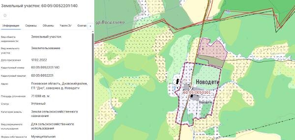 Название: Земельный участок из земель сельскохозяйственного назначения, с кадастровым номером 60:05:0052201:140, площадью 71098 кв.м, для