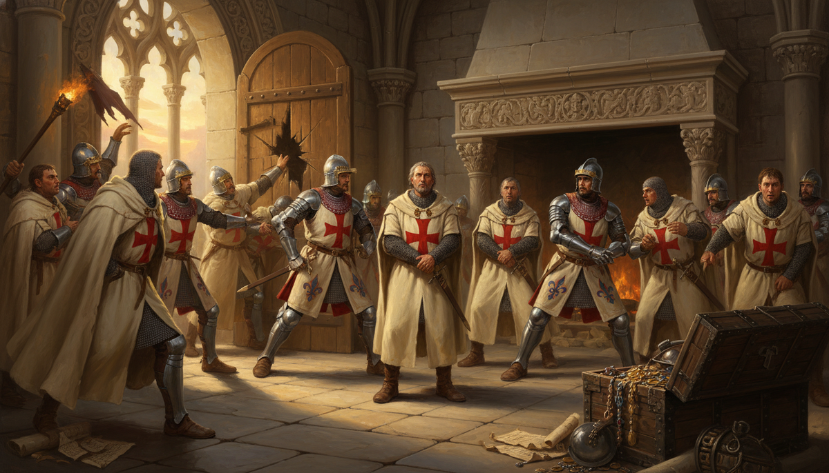 Филипп начал методично. Сначала — слухи. Тамплиеров обвинили в ереси, богохульстве, поклонении идолу по имени Бафомет, непристойных ритуалах посвящения. Доказательств не было. Зато был папа Климент V — французский, обязанный своим престолом именно Филиппу.