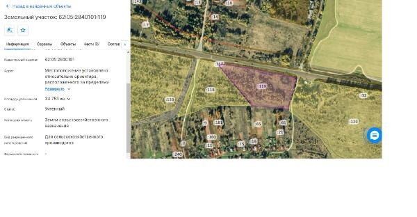 Название: Земельный участок с кадастровым номером 62:05:2840101:119, категория земель – земли сельскохозяйственного назначения, вид