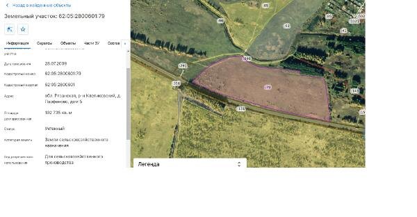 Название: Земельный участок с кадастровым номером 62:05:2800601:79, категория земель – земли сельскохозяйственного назначения, вид