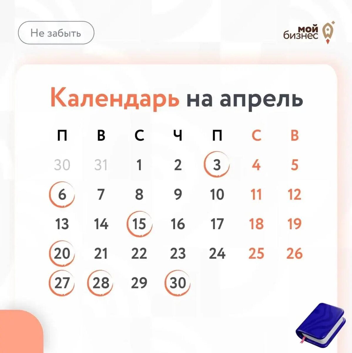 ❓ Апрель — месяц, когда надо брать все отчеты под контроль. Рассказываем о законодательных нововведениях и платежах в «Календаре предпринимателя». 📌Важные изменения: 🔹 вводятся новые правила заполнения платежных поручений на уплату налогов 🔹станут доступны 20 форм налоговой отчетности, которые можно будет сдавать через ЛК ИП 🔹появится возможность переводить денежные средства по СБП между организациями и ИП 🔹усиливается ответственность за производство и оборот табачной и никотинсодержащей продукции 👉🏻 Для удобства разместили «Календарь предпринимателя» на апрель на нашем портале #Мойбизнес_оважном
