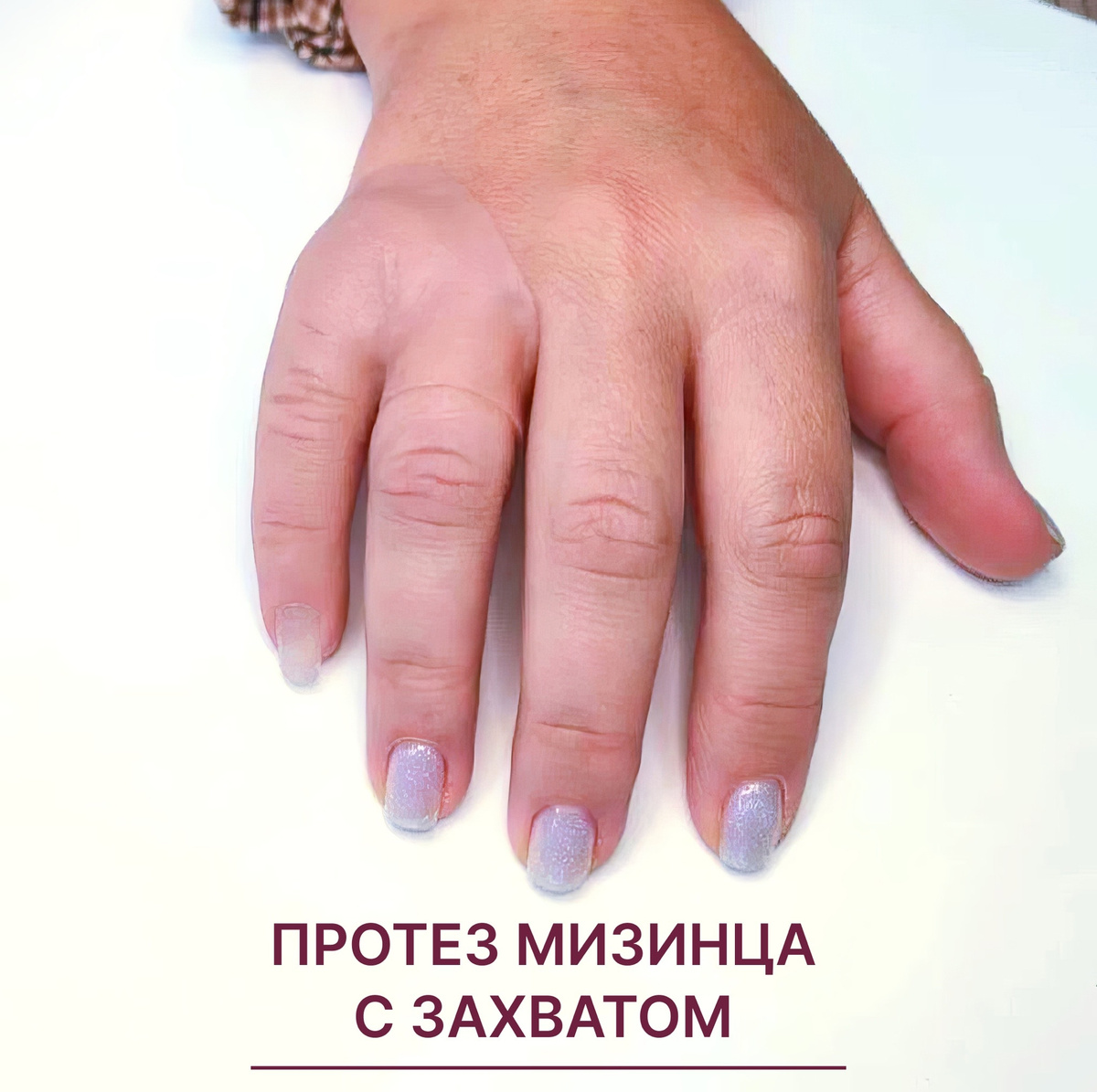 В Протез Студии мы понимаем, что каждая история уникальна и именно поэтому мы стремимся находить решения даже в самых сложных случаях. Одним из таких примеров стало обращение пациентки, которая потеряла мизинец из-за укуса собаки. После завершения лечения выяснилось, что ни одна фаланга , которая могла бы служить опорой для протеза, не сохранилось. В таких ситуациях стандартное косметическое протезирование оказывается невозможным. Без точки фиксации нет возможности носить протез, и это создает дополнительные сложности. Однако наши опытные протезисты предложили индивидуальное решение, которое позволило создать протез мизинца с захватом, который надежно фиксируется на соседнем безымянном пальце. Данный подход позволил: Каждый такой кейс требует тщательного анализа и проектирования, поскольку это не стандартная процедура, а индивидуально разработанная конструкция, адаптированная под конкретную анатомию. В Протез Студии мы находим решения там, где на первый взгляд его, кажется, нет. Наша з