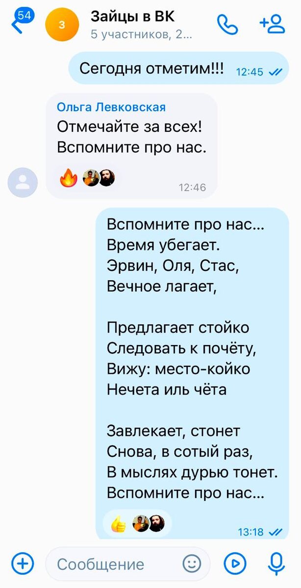 В нашем чате артистов спектакля «Лунные зайчики» образовалась традиция, когда на одну из реплик я пишу стих