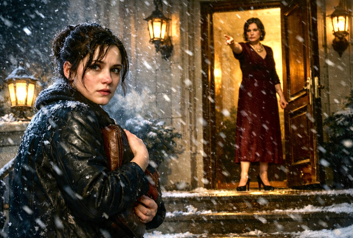 Паспорт полетел в сугроб. Следом — ключи. Потом Антонина Владимировна захлопнула дверь, и Лена осталась одна на крыльце, без документов, без ключей, без флешки, в одной тонкой кофте под расстёгнутой курткой.