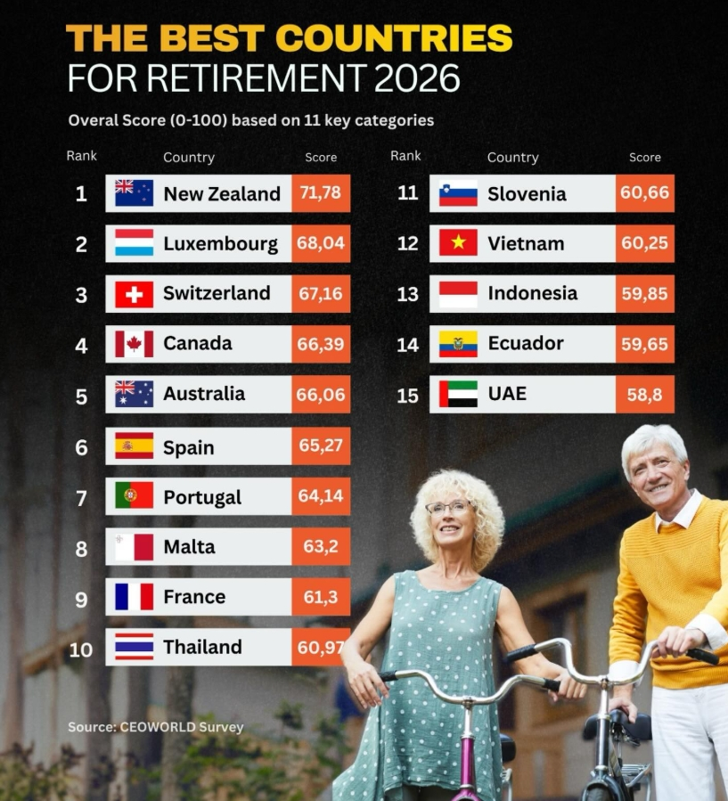 Устали от зимы и мечтаете провести пенсию в теплой стране? Специально для вас — свежие новости! По результатам глобального рейтинга лучших стран для пенсионеров 2026 года, Новая Зеландия заняла первое место! Ее опережают лишь Люксембург (2 место) и Швейцария (3 место). Эти страны славятся высоким качеством жизни, отличной медициной и стабильностью. Но что насчет Азии? Таиланд уверенно вошел в топ-10, заняв 10-е место! Вьетнам (12 место) и Индонезия (13 место) тоже не отстают. Города вроде Бангкока, Хошимина и Бали привлекают пенсионеров доступной стоимостью жизни, чудесным климатом и яркими впечатлениями. Европа все еще лидирует, но Азия набирает обороты! Низкие цены, развивающаяся инфраструктура и новые возможности делают эти направления всё более привлекательными. Пенсия — это не только комфорт, но и двери к новым приключениям! А вы бы хотели встретить свою пенсию в Таиланде или другой стране Юго-Восточной Азии? Поделитесь в комментариях! #Таиланд #Пенсия #Релокация #Переезд #З