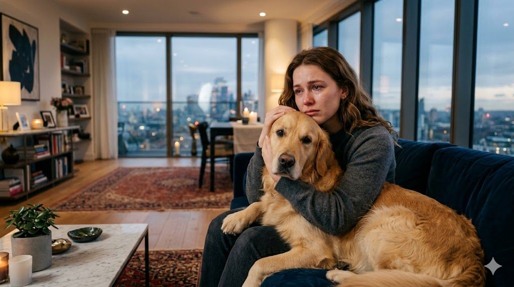 Двадцатипятилетняя Катя сидела на полу в своей комнате, спрятавшись за кроватью, словно в детстве. Она прижимала к себе Бурана — золотистого ретривера с удивительно добрыми глазами. Пес чувствовал состояние хозяйки и преданно клал голову ей на колени, изредка подталкивая её руку своим влажным теплым носом. Буран был последним, что связывало Катю с её прежней жизнью. Отец подарил ей этого щенка всего за три месяца до того, как его сердце остановилось. Для Кати этот золотистый комок шерсти стал живым напоминанием о папиной любви, о тихих вечерах и о той свободе, которую она безвозвратно потеряла, выйдя замуж за Игоря.